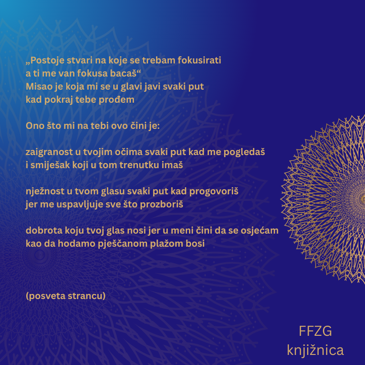 Ostatak objavljenih pjesama čitajte u kategoriji Poezija naših studenata i pjesmarici koju smo oblikovali i u kojoj smo ujedinili vašu poeziju.
